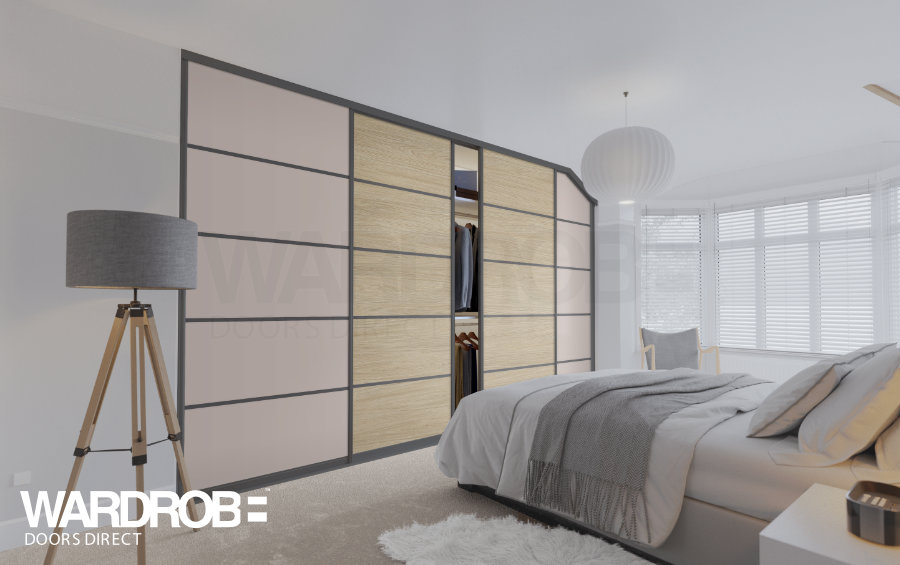 The Lovara sliding wardrobe door is a contemporary looking sliding wardrobe door that will fit most rooms. Customise the look with mirrored panels, coloured glass panels or elegant wood effect panels.