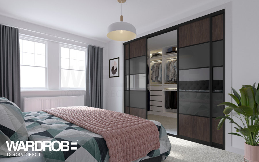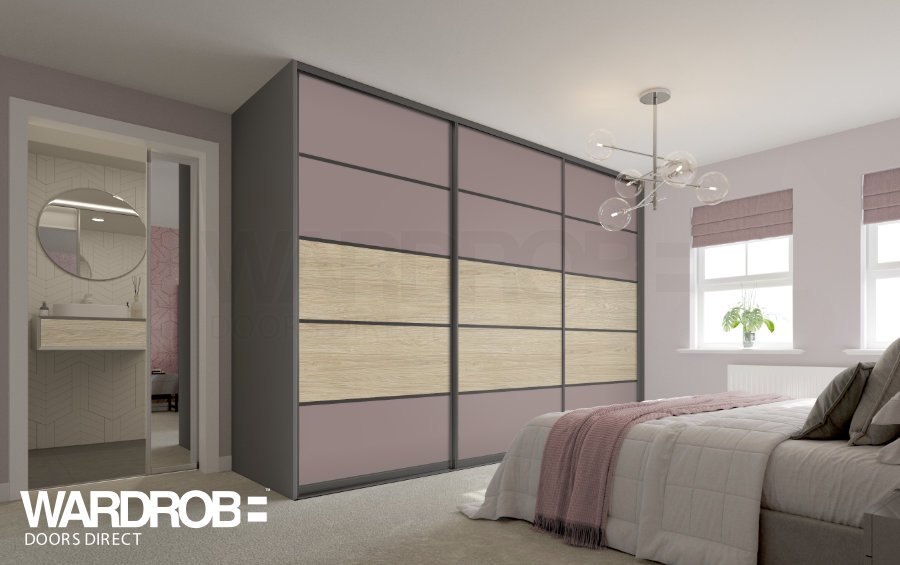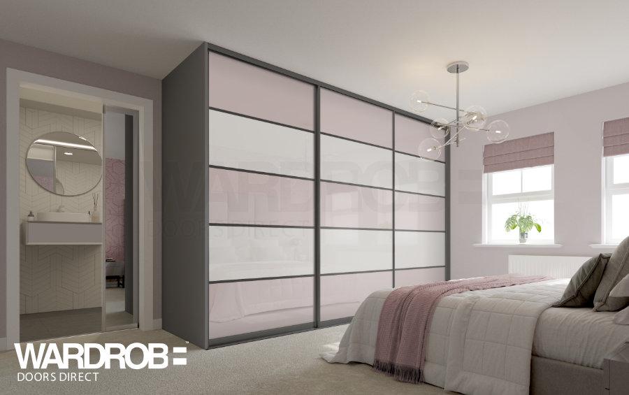 The Lovara sliding wardrobe door is a contemporary looking sliding wardrobe door that will fit most rooms. Customise the look with mirrored panels, coloured glass panels or elegant wood effect panels.